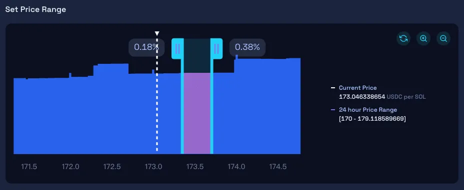 CLMM 允许流动性提供者在注入资金时选定一个价格范围,资金将仅在所选范围内分布: