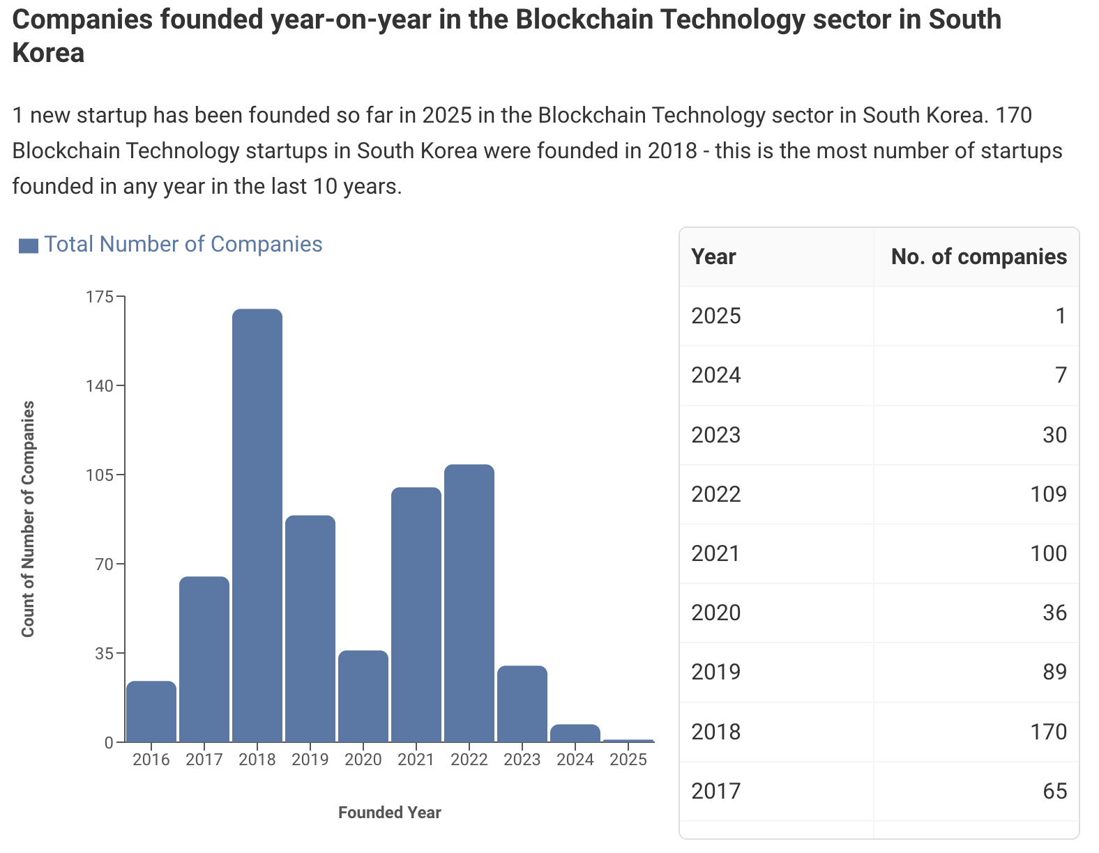 据 Tracxn 的数据,截至今年7月23日,韩国区块链技术领域仅有 1 家新创业公司成立,而在2018 年,韩国成立了 170 家区块链技术创业公司,而这是过去 10 年来成立创业公司数量最多的一年。此外,仅出现加密牛市及尚有余热的2021年与2022年,成立了逾百家区块链技术创业公司。
